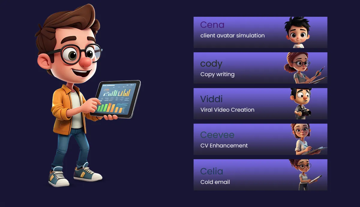 ⦿ Setze bis zu 70 KI Helfer ein, die deine Aufgaben erledigen